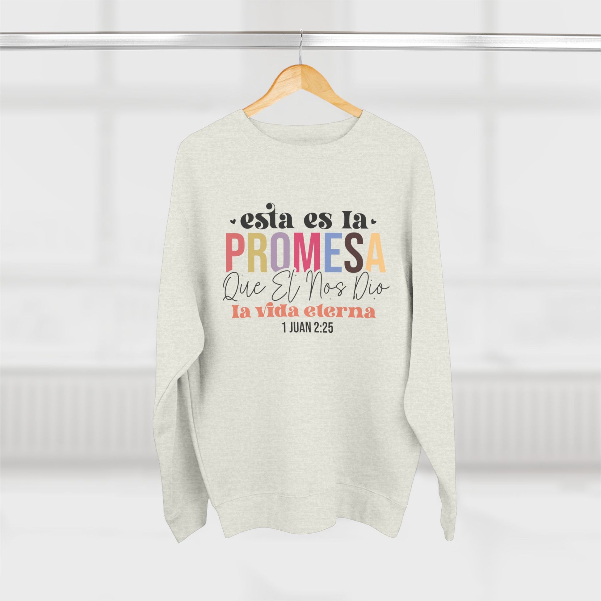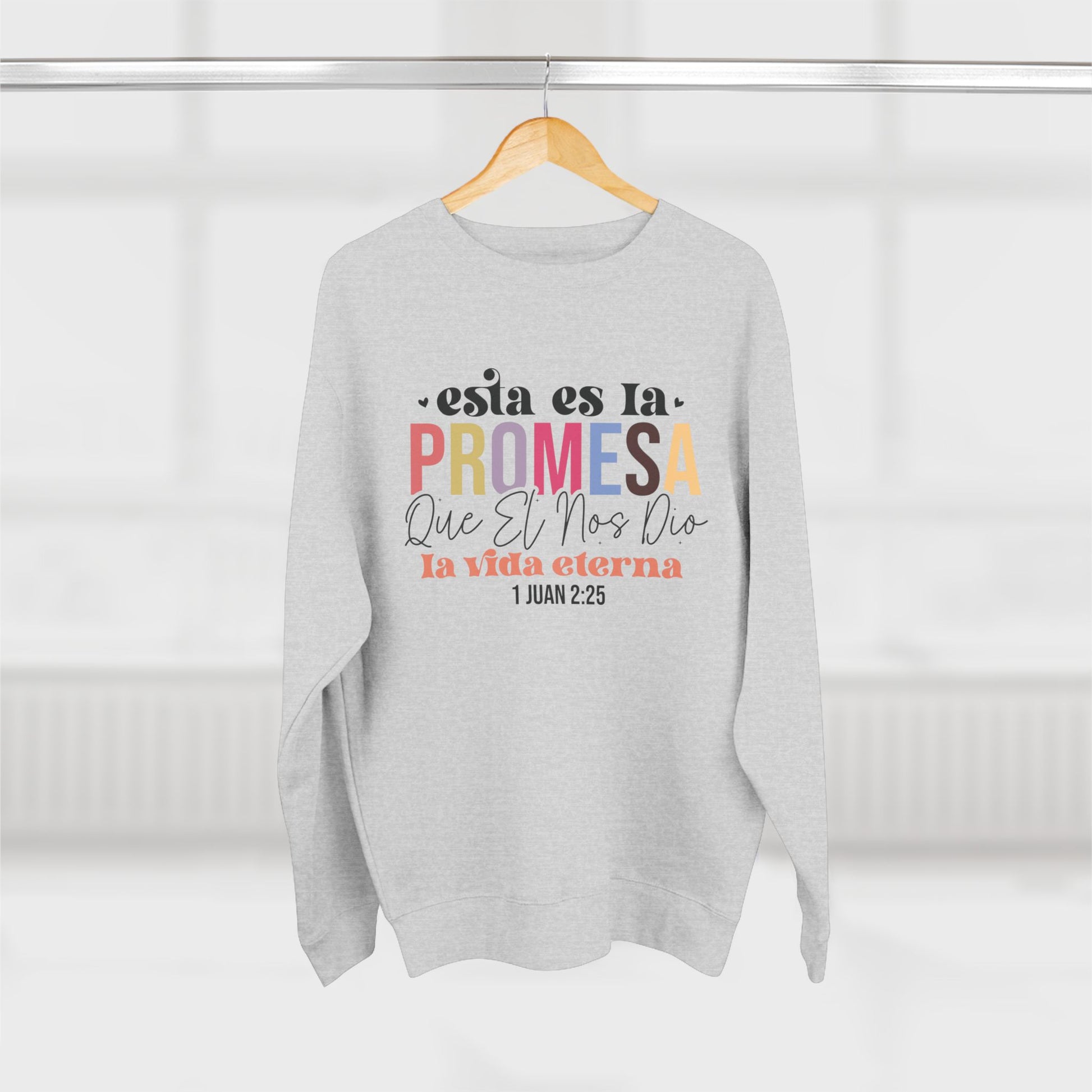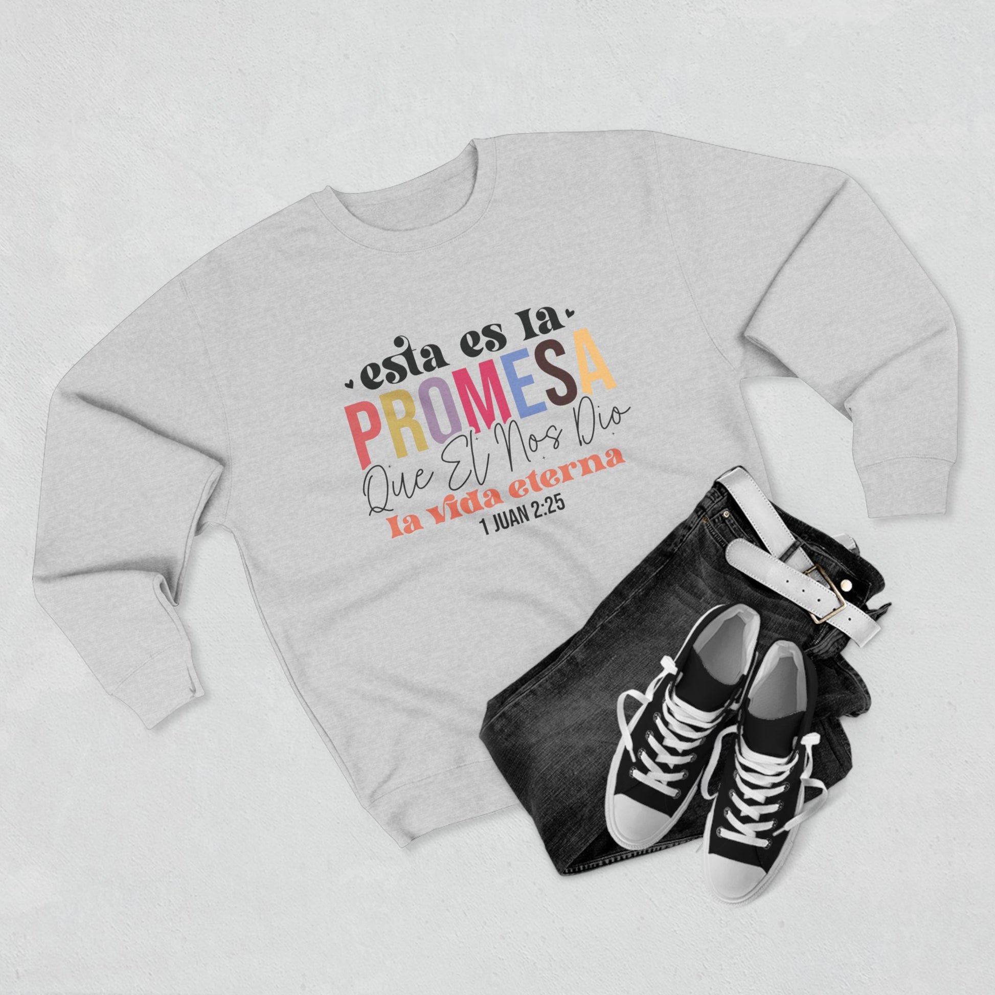 Crewneck Sweatshirt - Spanish Faith Quote "Esta es la Promesa" (1 Juan 2:25)